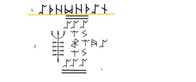 начинаем с середины : Эйваз+Дягаз — сама сущность. + Хагалаз ( в виде снежинки) — разрушение этой сущности.