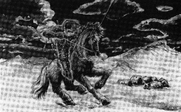 Прибытие Торри по представлению поэтов XVII–XVIII веков. Иллюстрация Sigurður Valur Sigurðsson, 1986 г.