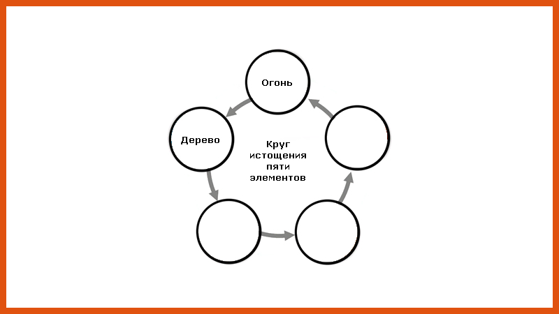 Пять элементов фэншуй могут взаимодействовать и по принципу истощения. Это когда одна энергия отбирает силы у другой. В данном случае огонь истощает дерево, потому как берет от него жизненную силу, для поддержания которой ему необходима постоянная подпитка. Поэтому он не столько ослабляет древесную стихию, сколько уничтожает ее, превращая в пепел, относящийся к стихии земли. Но таким образом, взаимодействуют далеко не все пять стихий.