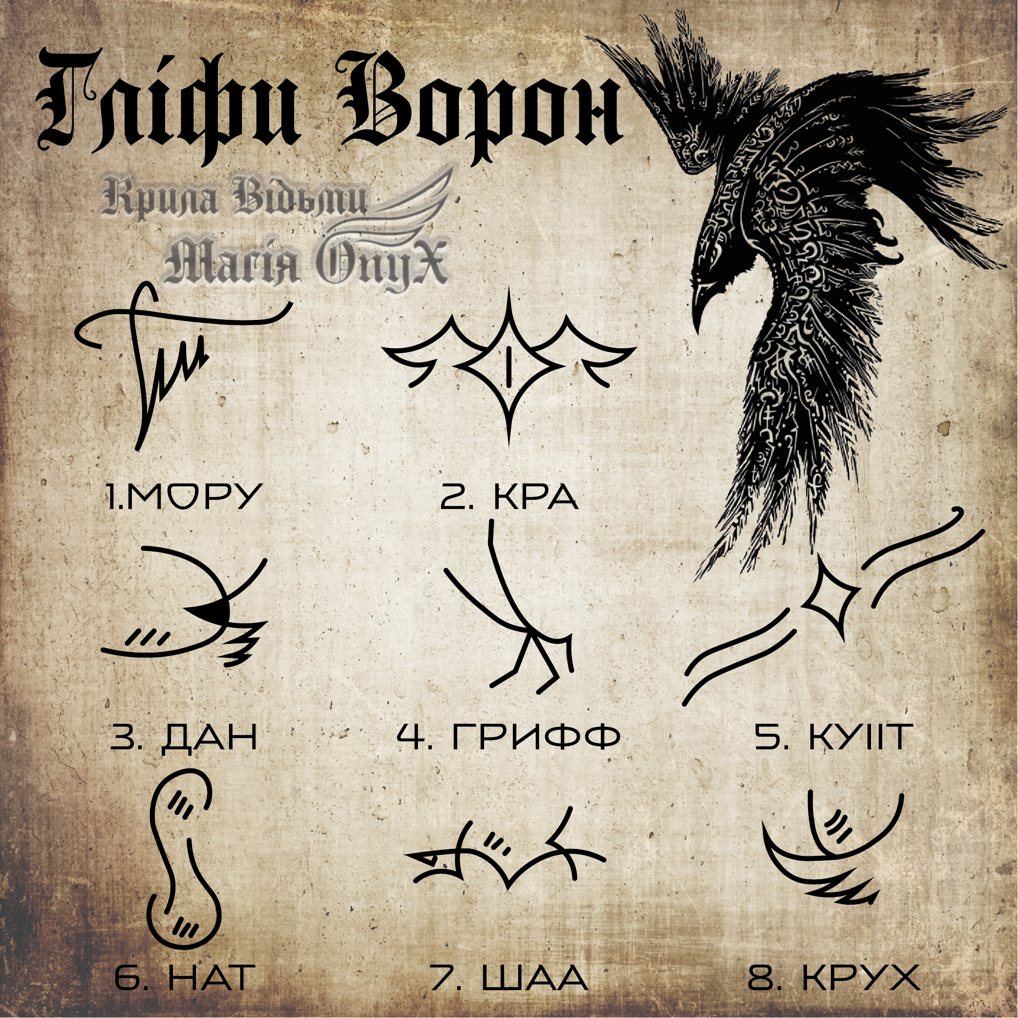 Гліфи Ворон створені мною після спостережень за зграями, медитацій та спілкування з воронами. Вони спрощують процеси візуально й енергетично.