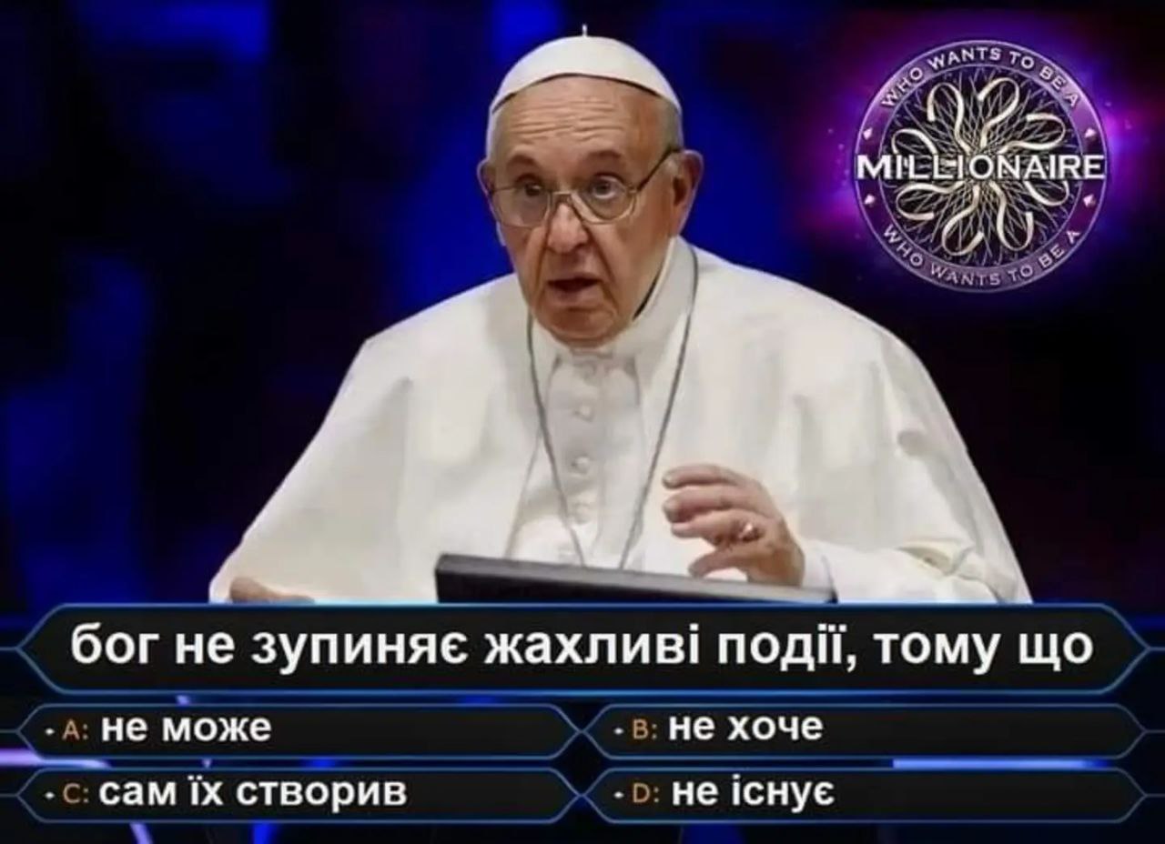 Останнім часом віруючі багатьох країн світу, де ступила нога ХЕ, грають з Папою Римським в одну захоплюючу гру. У відповідь на військові та політичні події, Папа щоразу щось візьме та й 3,14здане з цього приводу. А оскільки Папа – лівак-радикал, то й набір висловлювань у нього відповідний, від якого в прославлянців-адептів починають палати ніжні сідничні ділянки. У відповідь вони жваво видають істерику, бурхливо обговорюють цей висмоктаний з пальця привід у мережах та у ЗМІ, репетують і заявляють, що Папаня продався Дияволу… Потім Папа знов видає чергову порцію своїх оціночних поглядів, і гра триває далі.