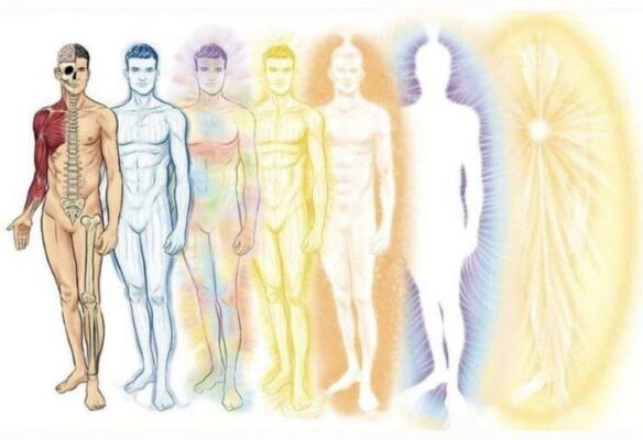 Зліва фізичне тіло із щільними органами, тканинами та складною біохімією, а праворуч – різні зрізи ОДНОГО тонкого тіла. Це не двійники, не якісь абстрактні будхіальні та каузальні коні у вакуумі, а те, як виглядає ефірне тіло у різних станах та ракурсах. Плутанину створює те, що тонкі об’єкти не статичні і в людському сприйнятті завжди виглядають трохи по-різному. На крайній правій картинці, ми бачимо те, що дон Хуан називав терміном «кокон, що світиться». Так виглядає людина цілком, і так її бачать пустотники.