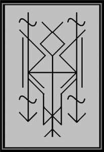Идем от края к центру — Иса, Наутиз-Райдо-пер.Тейваз, Уруз, Ир. В центре — пер. Одал, Стунгинн Ис, пер. Манназ, пер. Альгиз. Волнистые линии — это мороки, которые не дают кролику осознать причинно-следственные связи в тех неприятностях, которые начинают с ним происходить.