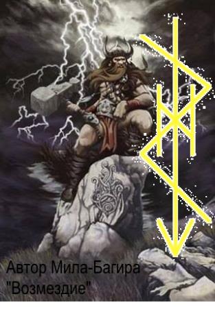 2 руны Наутиз в формуле, будут принуждать и вызывать потребность человека держать ответ за содеянное и спровоцированное зло по отношению к окружению. Т.е. судьбоносный ответ для очищения перед Высшими Силами.