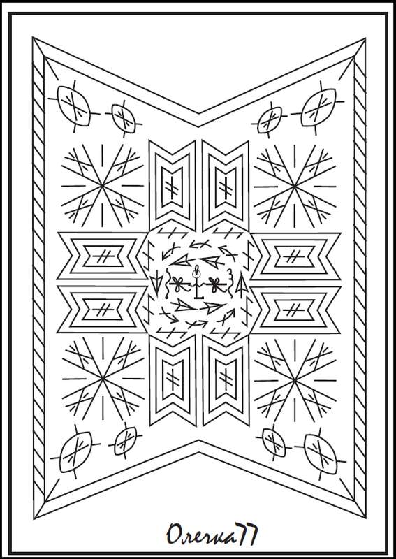 тут добавлены руны: Хагалаз — разрушает, то что не ушло, Глифы воздуха, Тейваз + Наутиз — заставляет воздух двигаться образуя воронку, для чистки. По углам тоже Тейваз — сила, удерживающая любой напор.