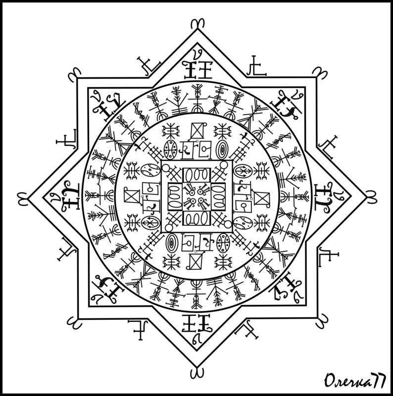 Символ Земли + tví-örvaðr bogi – что бы негатив уходил в Землю — Матушку