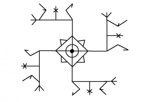 Основа — свастика (посолонь) — мобилизирует силы человека и как символ оберега.