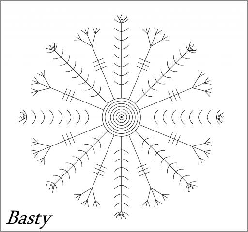 В центре точка это Дух/Душа оператора, кружочки Соль подпитывают 7 тонких тел оператора,8 лучей на каждой по 8 Кальков с глифом Шин и знаком бесконечности беспрерывно стирают уничтожают нападения и источники нападения по всем пластам времени и пространства, 8 лучей с разветвленными Альгизами, на каждом из который по 3 Исы для заморозки негатива.