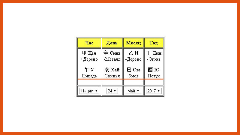 2. Змея + Лошадь + Коза = огонь, если в столпах есть небесный ствол «инь-огонь» или «Ян-огонь» или земной ветвью месяца является Лошадь.